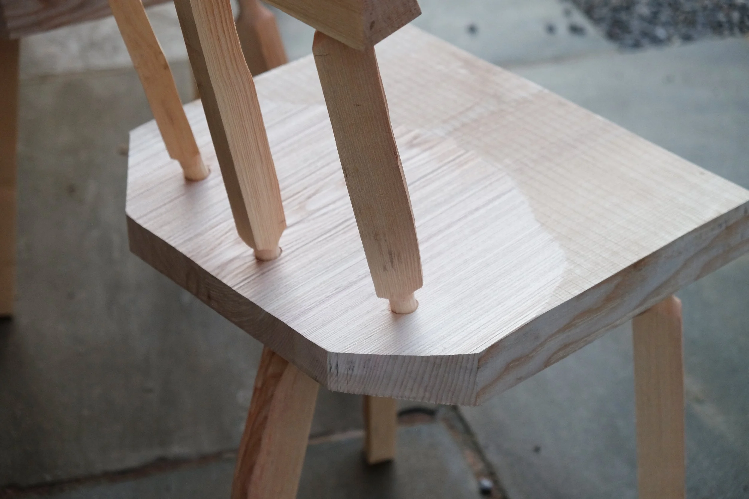 The context of the windsor chair was used to explore this idea. Almost all of the processes used deviate from traditional windsor techniques. This is a consequence of the restraint of time.