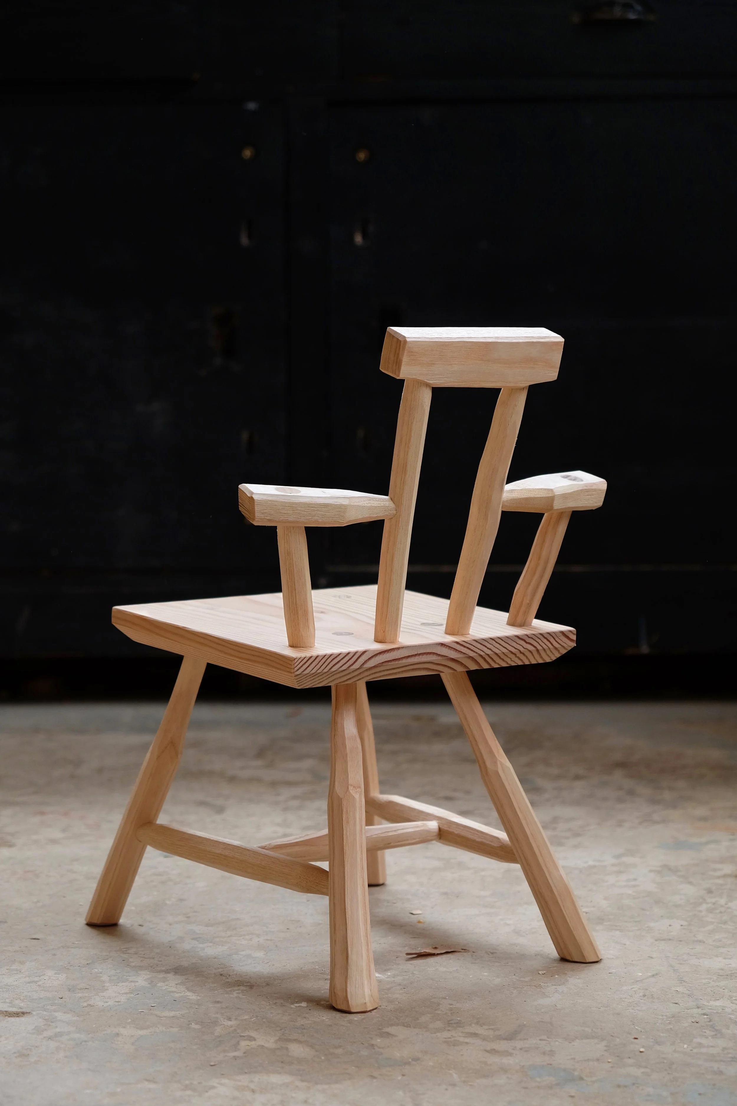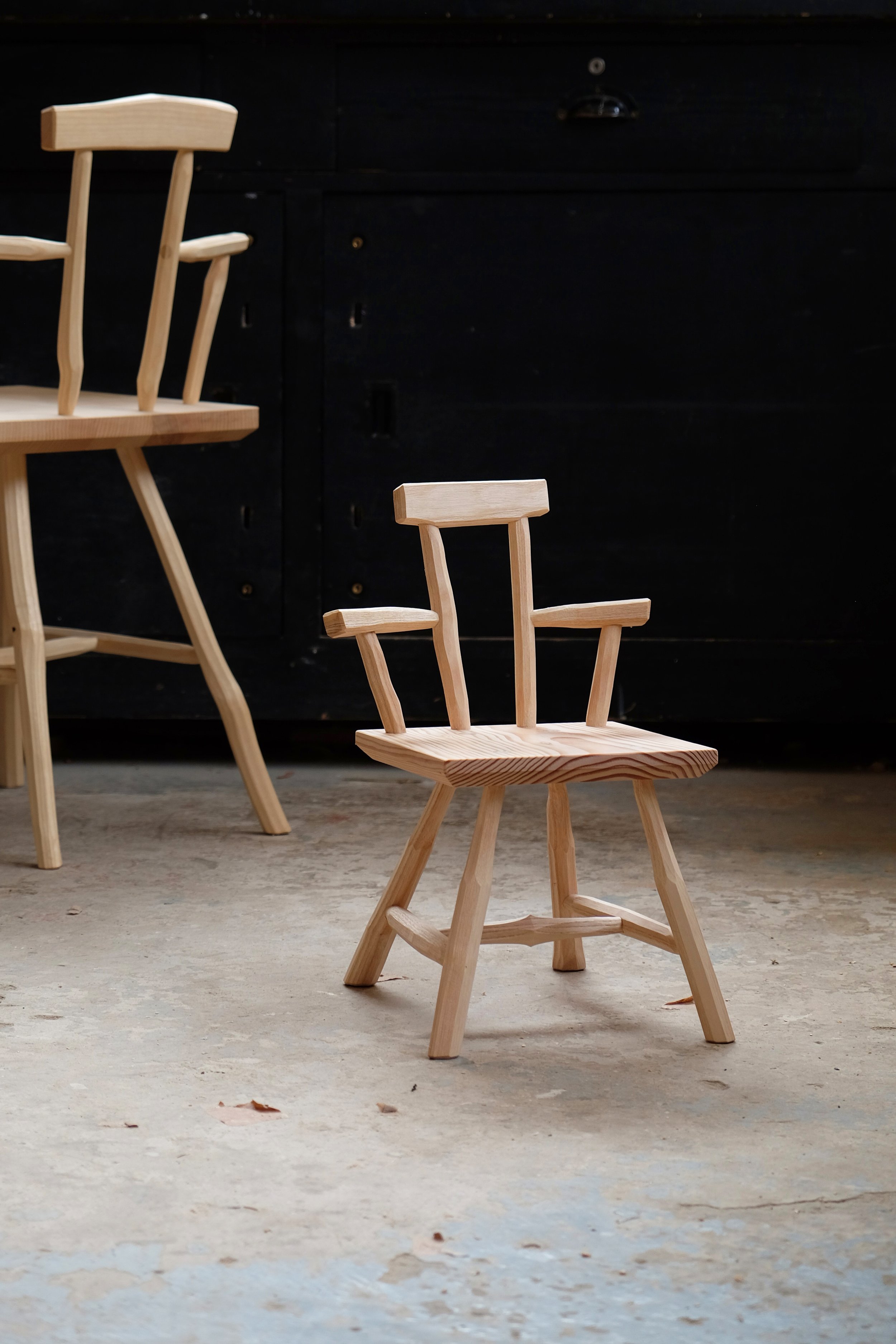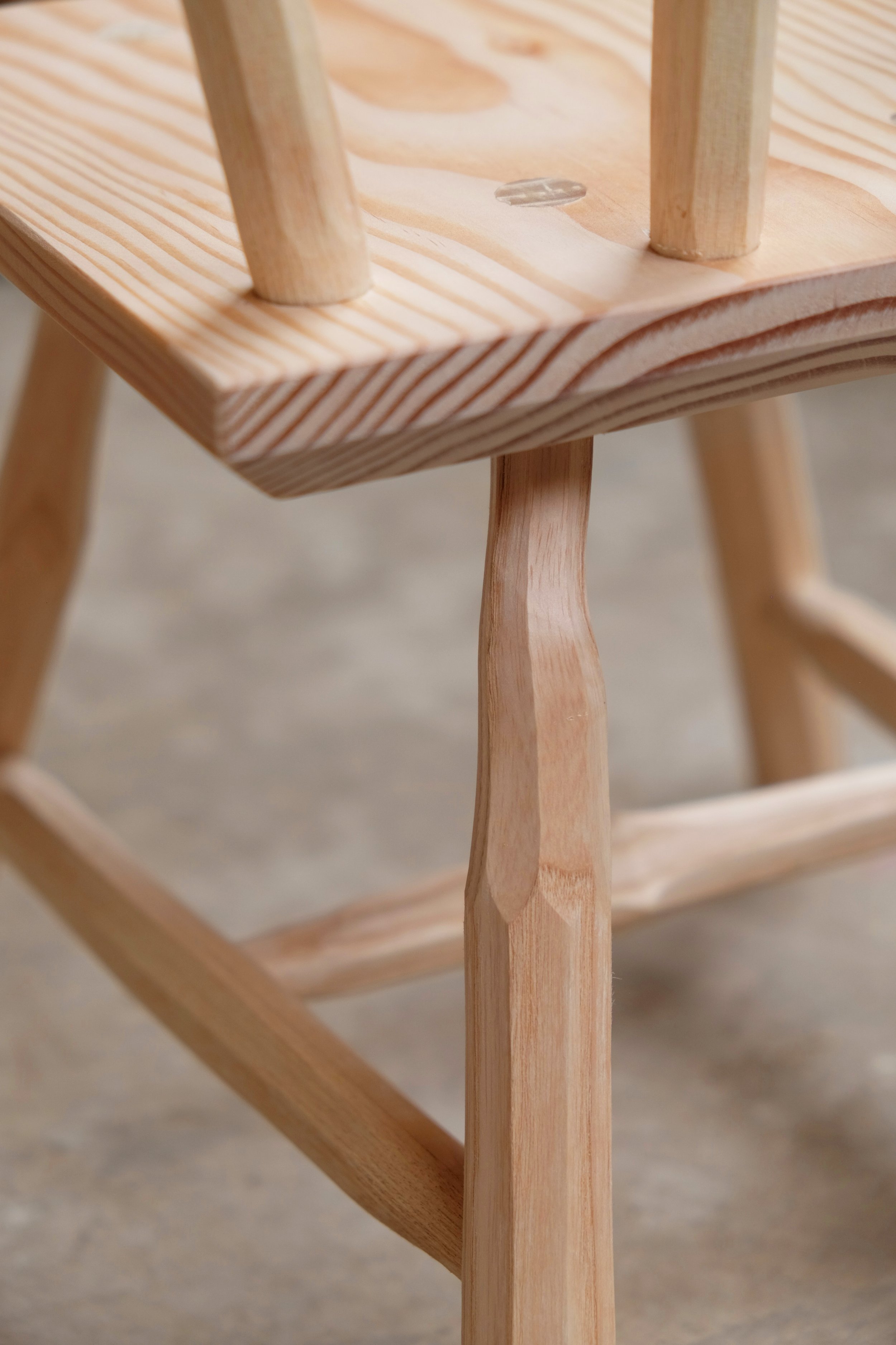 Because this method forces the maker to follow the grain, the resulting shapes and forms are wonderfully characterful, and give each chair a unique soulfulness. The design and method of construction of this piece aim to capture that character and soul, while still feeling refined.