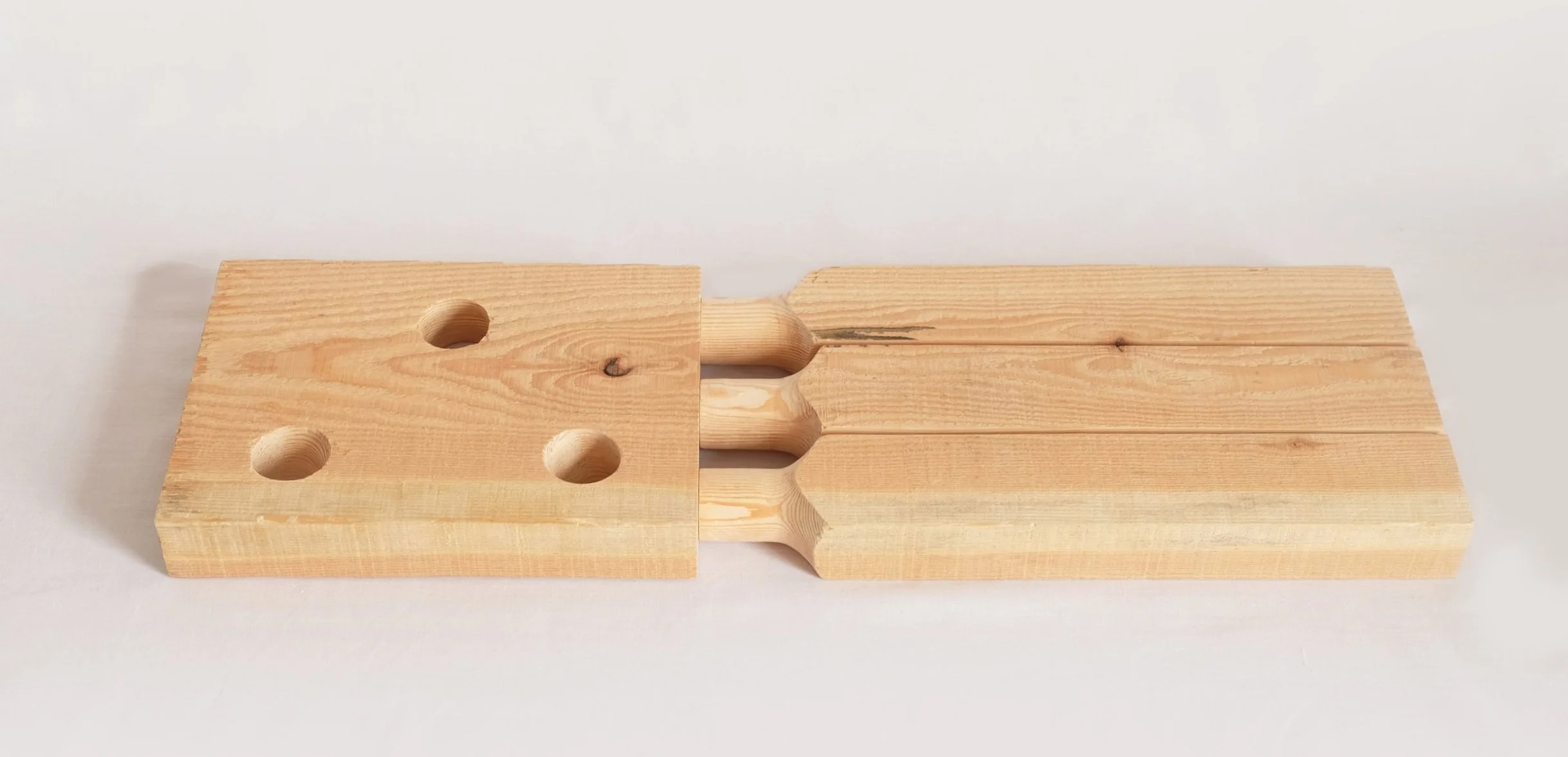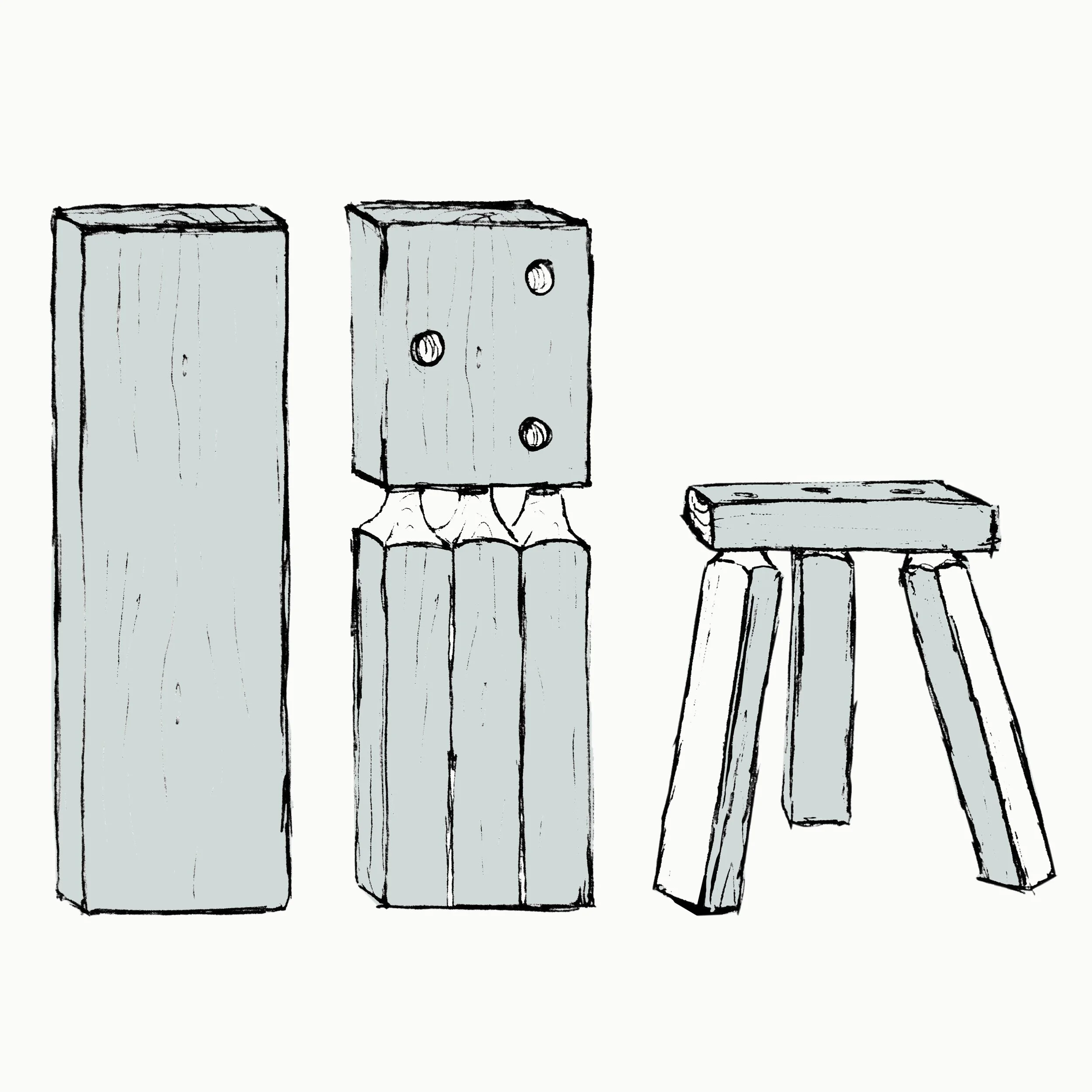 A self assembly stool, intended to inform the user about material processing and timber production. The stool is made from a single rough sawn board of douglas fir. It is designed to use as little processing as possible during production leaving as much of the rough surface as possible. As a result, the areas which are smooth and finished act as indicators of processing.